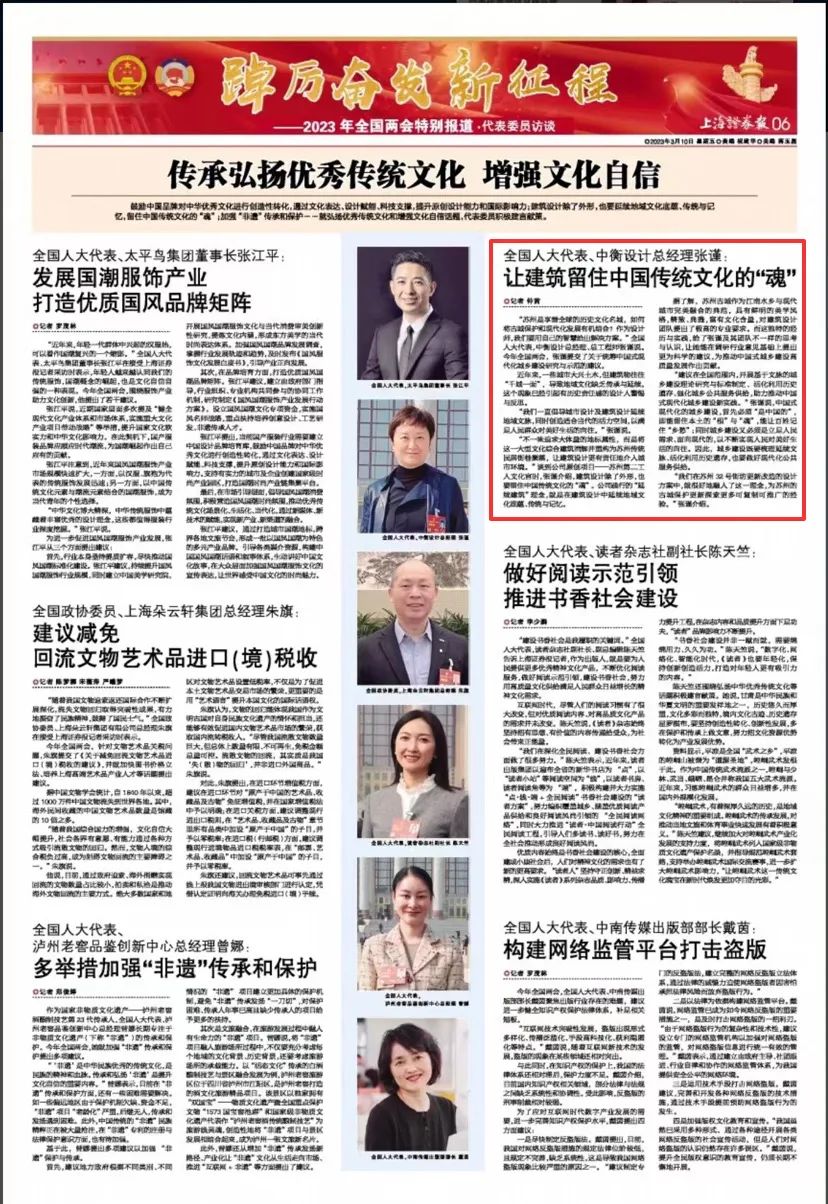 習近平總書(shū)記在參加江蘇代表團審議時(shí)強調,牢牢把握高質(zhì)量發(fā)展這個(gè)首要任務(wù),“必須以滿(mǎn)足人民日益增長(cháng)的美好生活需要為出發(fā)點(diǎn)和落腳點(diǎn),把發(fā)展成果不斷轉化為生活品質(zhì),不斷增強人民群眾的獲得感、幸福感、安全感。”身處會(huì )議現場(chǎng),全國人大代表,中衡設計集團股份有限公司總經(jīng)理、總工程師張謹深受鼓舞,倍感振奮!“在以人為本的新型城鎮化建設和美麗鄉村建設中,我們將把滿(mǎn)足人民對更美好生活需求作為出發(fā)點(diǎn)、落腳點(diǎn),提供高品質(zhì)的設計與服務(wù),聚焦保護與更新有機融合,描畫(huà)中國式現代化城鄉建設新實(shí)踐。”而這也正是她今年帶來(lái)的《關(guān)于統籌中國式現代化城鄉建設研究與示范的建議》關(guān)注的主題。